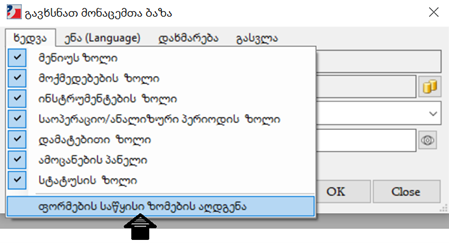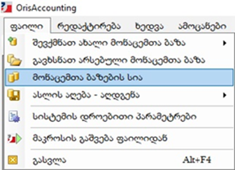 1. აირჩიეთ მენიუ [ფაილი] – [მონაცემთა ბაზების სია];