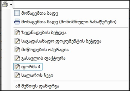 ველში „ცხრილი“ თუ აირჩევთ „Table“ ეკრანზე გამოვა ინფორმაცია ოპერაციის შესახებ, თუ აირჩევთ „Table 2“ ეკრანზე გამოვა ინფორმაცია გატარებების შესახებ .